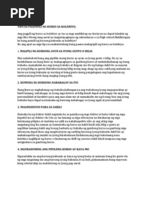 Quarterfreelp and 51 more. Ang PanimulaIntroduksyon Rasyonal Ang pagpili ng kurso sa kolehiyo ay isa sa pinakamahalagang desisyon sa buhay na dapat suriin at pagmuni-munihing mabuti ng bawat indibidual ngayon lalo na sa mga kabataan na nakapagtapos ng Junior High School ngunit mayroong posibleng maging hadlang at makaapekto sa desisyon na ito. Ang iyong karera ay nag-uumpisa sa pagpasok sa iyong kurso.