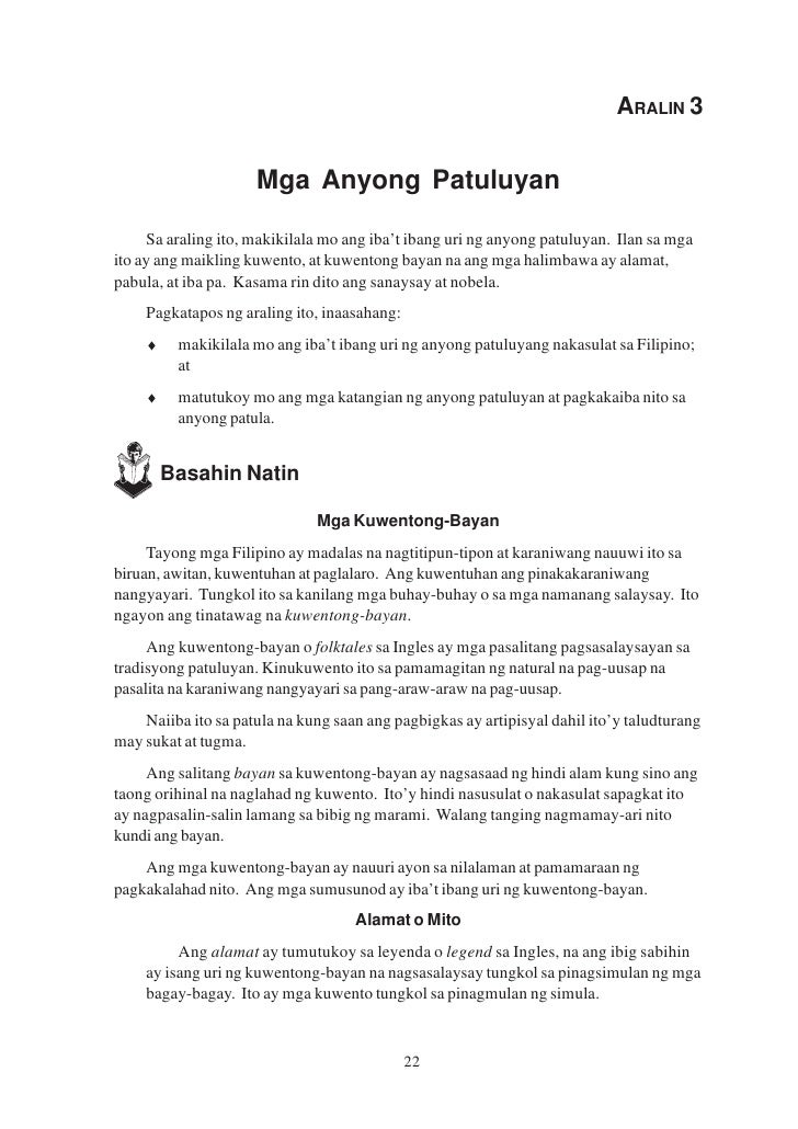 MGA ARALIN COMMENTS SECTION BELOW. Maaaring totoo o likha lamang ng malawak na imahinasyon ng isang manunulat ang mga pangyayari sa alamat. Dula Akdang itinatanghal sa tanghalan.