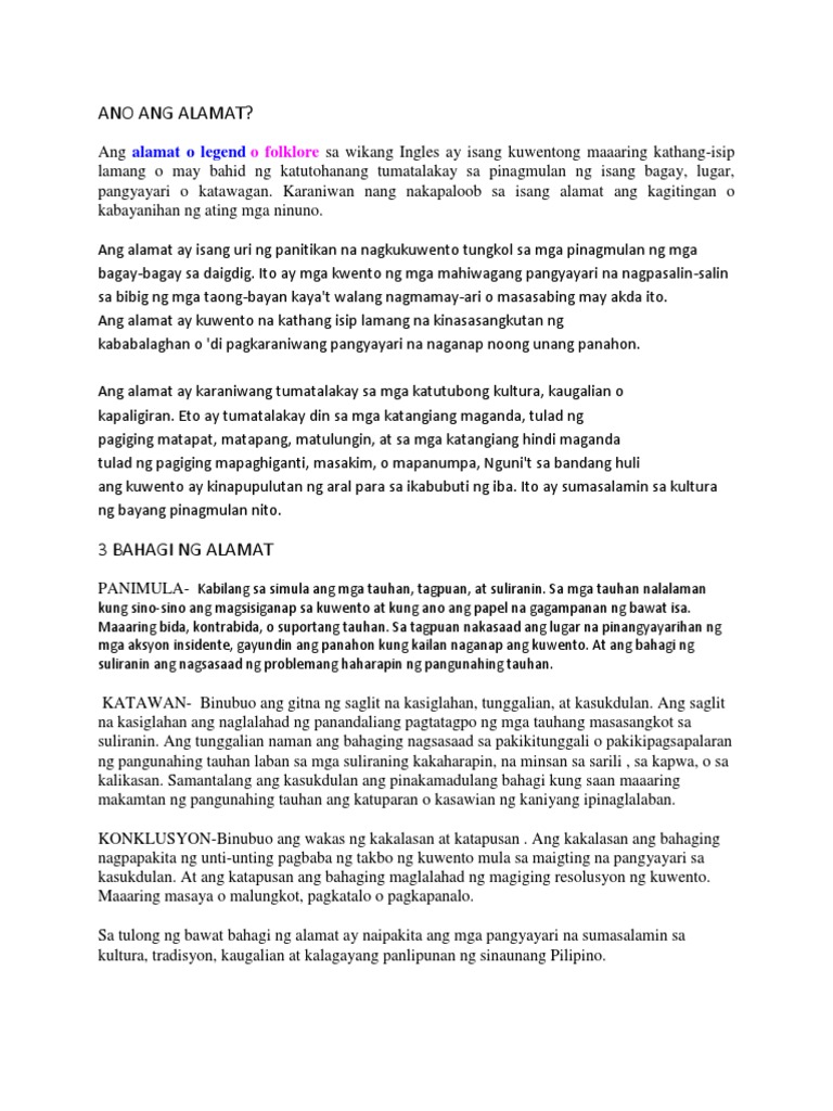 Alamat Docx 1 Ang Alamat Ay Isang Uri Ng Kuwentong Bayan At Panitikan Na Nagsasalaysay Ng Mga Pinagmulan Ng Mga Bagay Bagay Sa Daigdig 2 Ang Course Hero